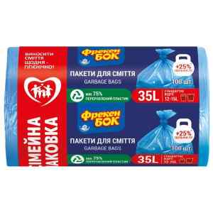 На этикетке обычно указан размер пакета либо в единицах объема (20 л, 35 л, 60 л и т.д.), либо в единицах длины (50*60 см, 60*80 см и т.д.). Чаще всего размер указывается одновременно двумя способами. Размер пакета в единицах объема – условный, т.е. не стоит воспринимать его буквально. Объем пакета 35 л указывает на то, что пакет может быть использован для стандартного бытового ведра 10 – 12 л. Пакеты меньшего литража 20 л, пригодны, например, для офисного использования без значительной нагрузки. Пакеты объемом 120 л и 160 л предназначены строительного мусора, мусорных контейнеров или крупногабаритного мусора.