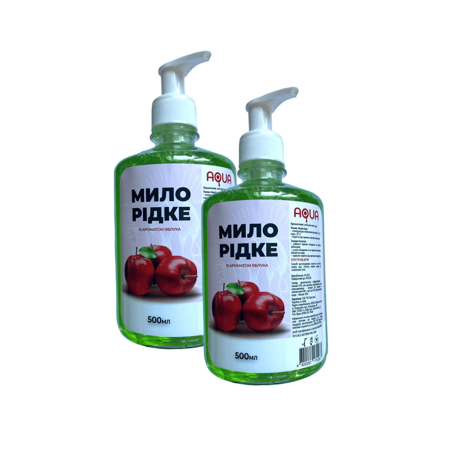 - Мыло жидкое АКВА 500 мл с дозатором, аромат яблока